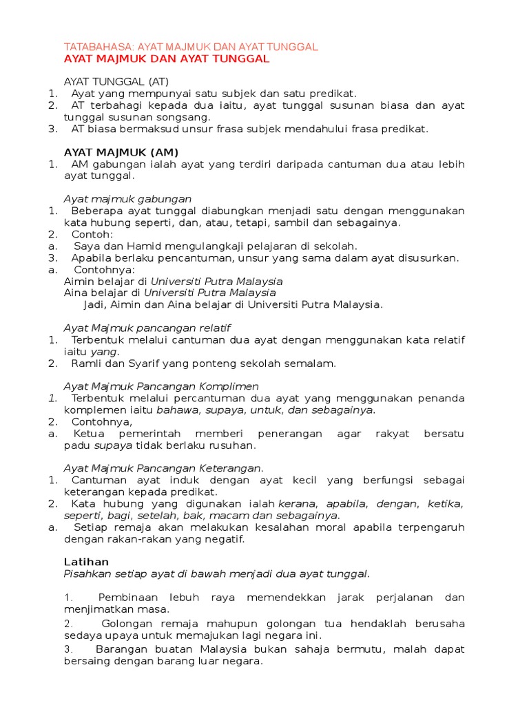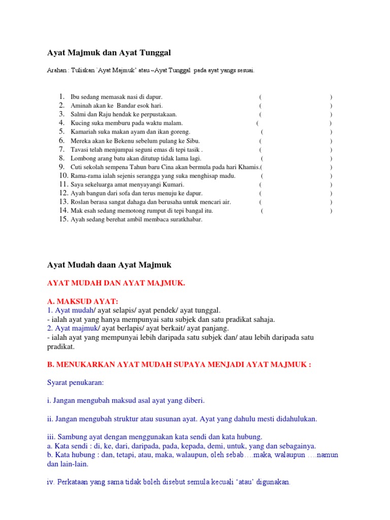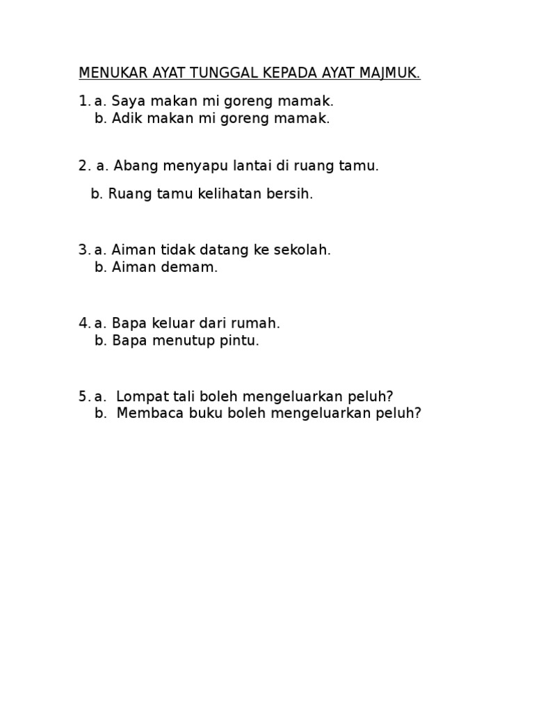 Ayat Tunggal Kepada Ayat Majmuk - Cara menukar ayat aktif kepada ayat pasif.. Perhitungan untuk bunga, penyusutan bunga juga bisa diberikan oleh pemberi pinjaman kepada pinjaman. Dalam sebuah kalimat majemuk akan terdapat. Savesave ayat tunggal kepada ayat majmuk for later. Download as doc, pdf, txt or read online from scribd. Artinya memungkinkan adanya dua unsur yang sama dalam sebuah kalimat kalimat majemuk merupakan penggabungan dua kalimat tunggal dengan menggunakan konjungsi.